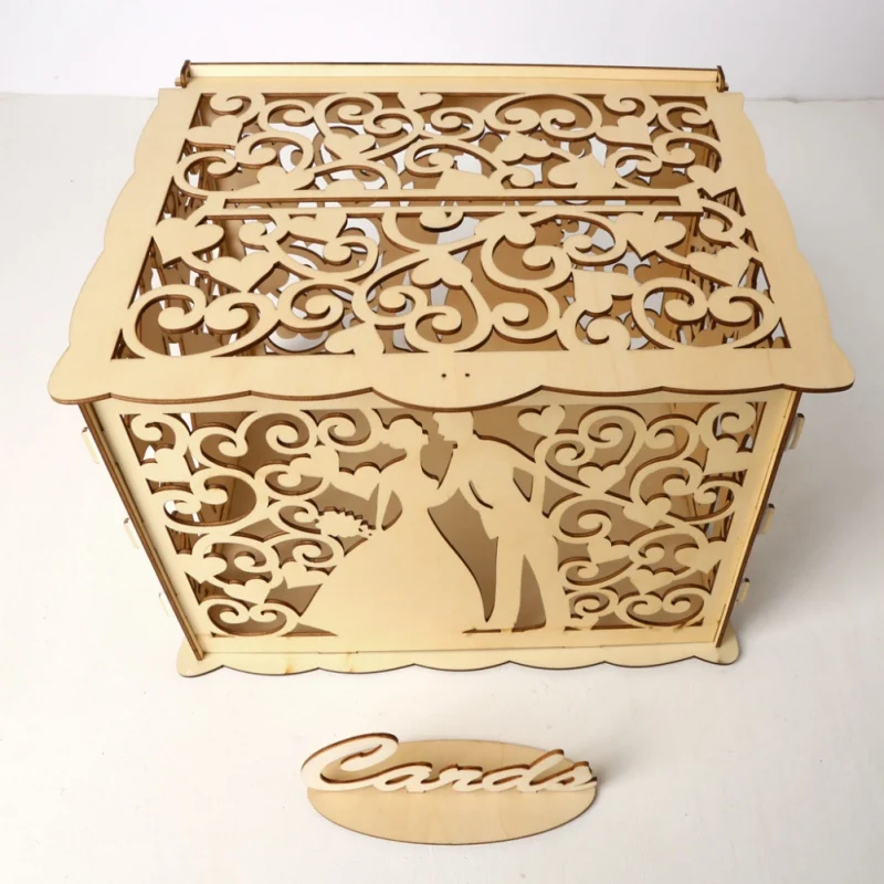 Hollow Design DIY Wedding Card Box With Lock And Card Sign Gift Card Diy Rustic Hollow Wedding Mone