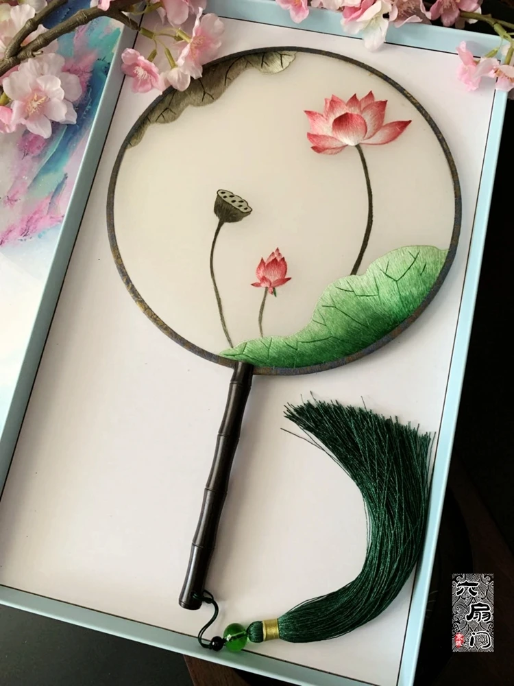 Review Top bridesmaid Gift hand Fan Two-sided Silk Embroidery Ebony Palace Fan Suzhou wedding favors and gifts