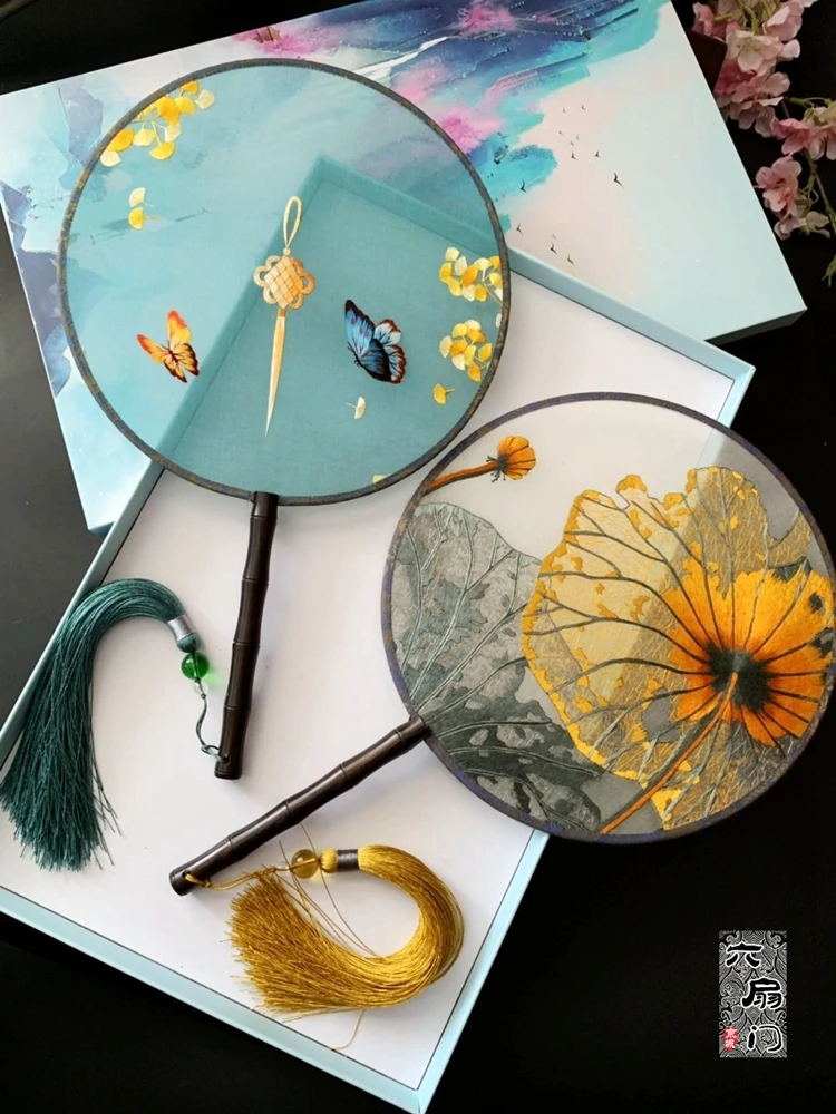 ORIGINAL bridesmaid Gift hand Fan Two-sided Silk Embroidery Ebony Palace Fan Suzhou wedding favors and gifts